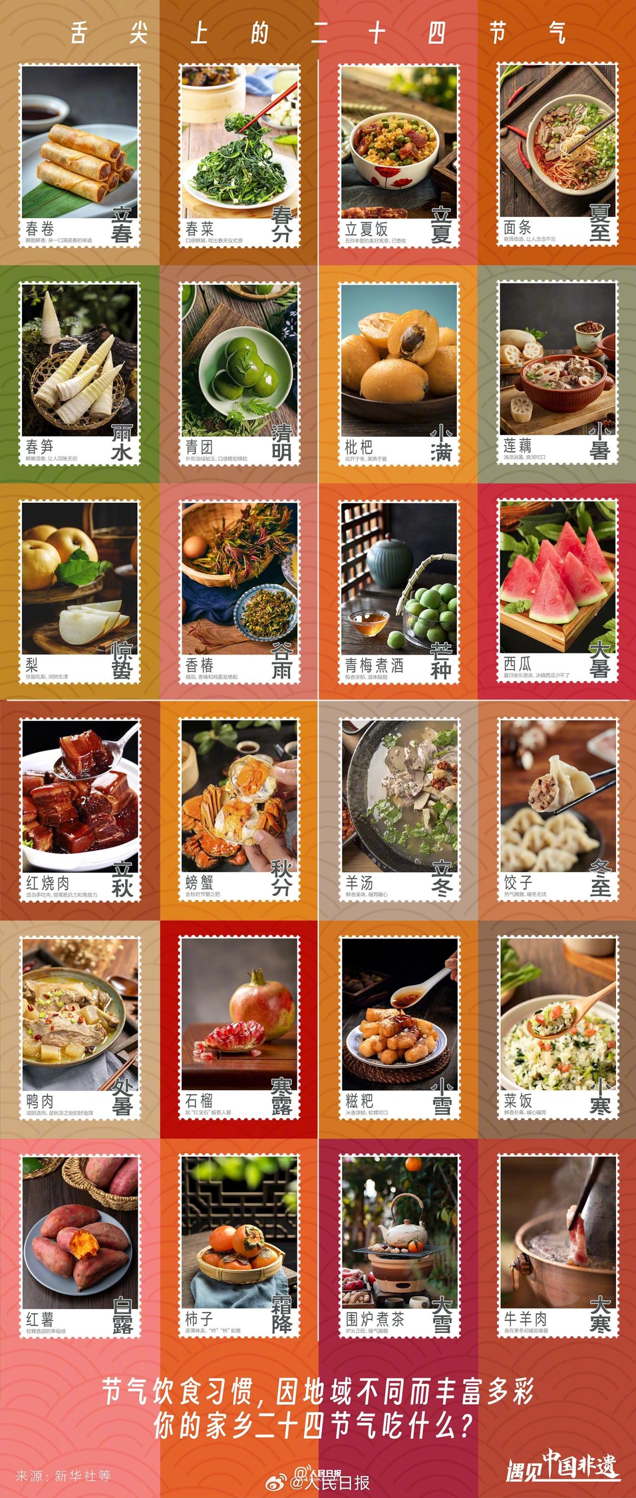 立春的香脆春卷、小满的甜蜜枇杷、秋分的肥美螃蟹、立冬的浓郁羊汤…戳图感受舌尖上的二十四节气↓↓